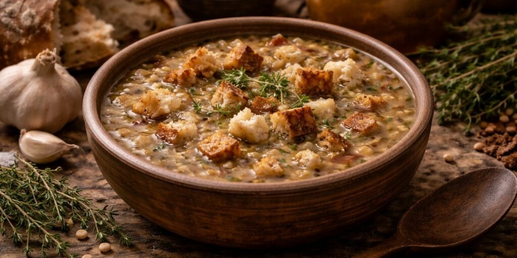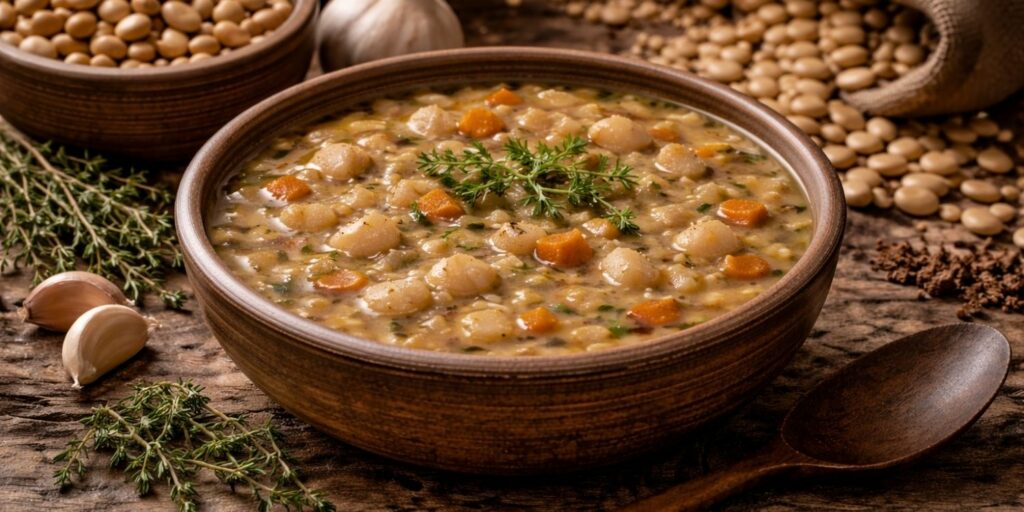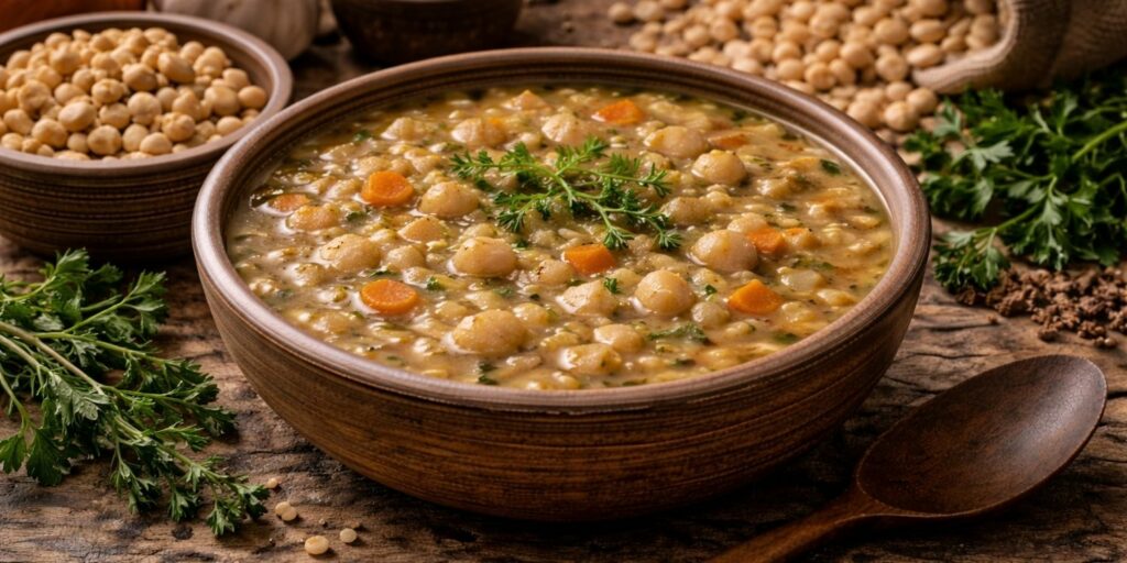 Aujourd’hui, ce potage inspire encore les cuisines rustiques et traditionnelles. Il rappelle l’importance des légumineuses dans l’alimentation ancienne. Sa simplicité en fait une recette intemporelle. Un vrai retour aux sources culinaires.