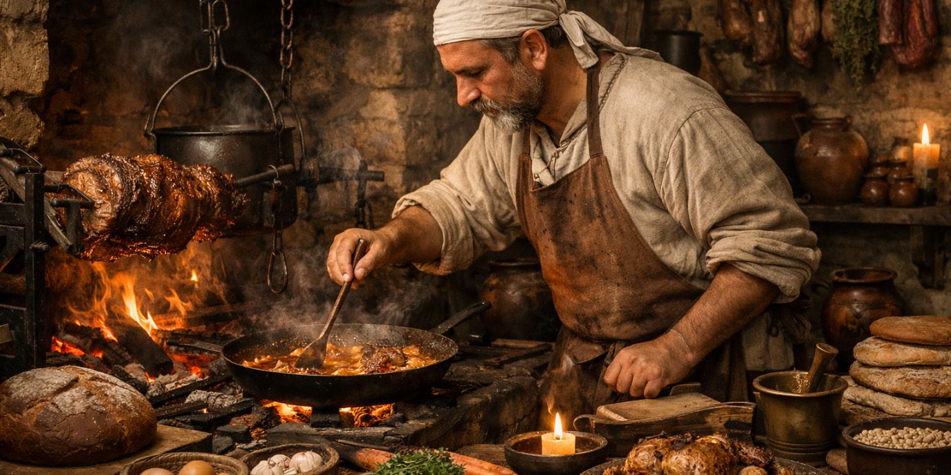 Comment mangeait-on réellement dans les châteaux et les grandes demeures médiévales ? Quelle était la place du cuisinier dans un monde où l’alimentation révélait le rang social ? Derrière les banquets fastueux se cachait un métier exigeant, à la croisée des savoir-faire et des traditions. Découvrons ensemble la réalité fascinante du cuisinier au Moyen-Âge. Quel