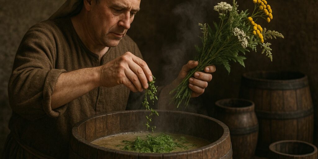 Bien avant que le houblon ne devienne un standard, la bière médiévale tirait ses arômes d’un éventail de plantes locales. Ces ajouts servaient non seulement à améliorer le goût, mais aussi à conserver la bière plus longtemps. Parmi les plantes fréquemment utilisées, on retrouvait l’achillée millefeuille, le genièvre, le thym ou encore la menthe. Ces ingrédients donnaient aux bières des saveurs herbacées ou résineuses.