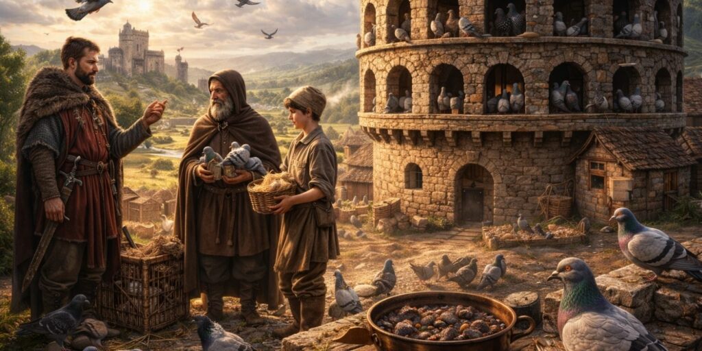 Le pigeon a l’avantage de se reproduire rapidement. Une femelle peut pondre plusieurs fois par an. Cette capacité permettait d’assurer une production continue. Les seigneurs pouvaient ainsi disposer d’une source stable de viande.