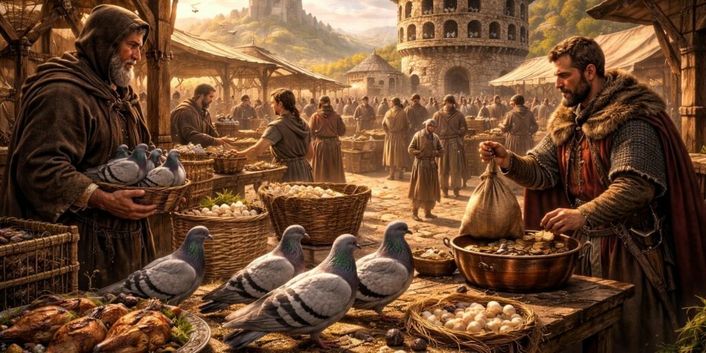 La viande de pigeon pouvait être vendue sur les marchés locaux. Cette activité générait des revenus complémentaires. Les seigneurs tiraient profit de leur élevage. Le pigeon devenait ainsi une ressource commerciale.