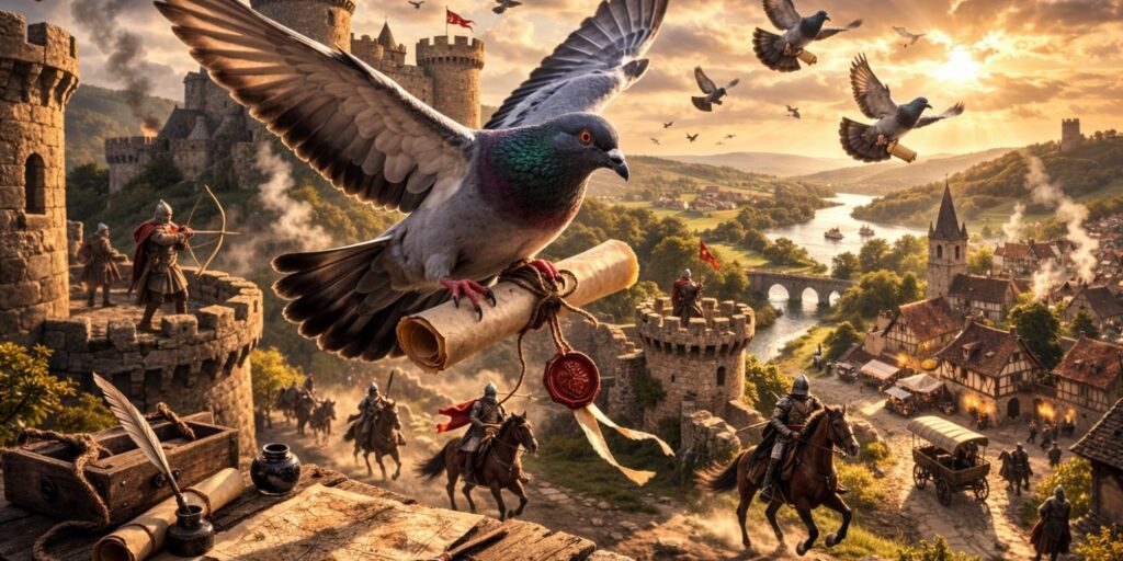 Au Moyen Âge, la rapidité de transmission des informations était un enjeu majeur. Les messagers à cheval pouvaient mettre plusieurs jours à parcourir de longues distances. Le pigeon voyageur, lui, était capable de retrouver son colombier en quelques heures seulement. Cette capacité en faisait un outil précieux pour envoyer des nouvelles urgentes.