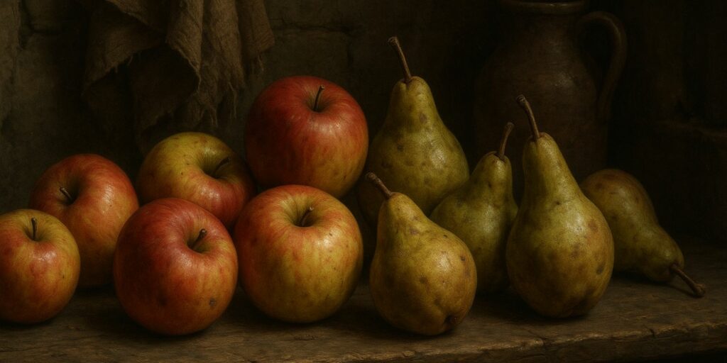 Dans les monastères, les pommes et les poires figuraient aussi parmi les denrées cultivées. Les moines tenaient des vergers bien entretenus pour subvenir à leurs besoins. Ils expérimentaient même des greffes pour améliorer les rendements. Ces fruits avaient ainsi une dimension spirituelle et nourricière, intégrée à la vie religieuse quotidienne.