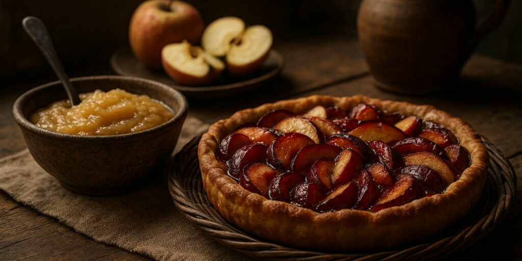 Les compotes et les tartes aux fruits ne sont pas des inventions modernes : elles étaient déjà bien présentes dans les cuisines médiévales. La compote, appelée alors « composte », désignait un mélange de fruits cuits dans du vin, du miel et des épices. Elle était servie en accompagnement de plats ou en dessert, selon les occasions. C’était une manière simple et efficace de conserver les fruits tout en les rendant plus digestes.
