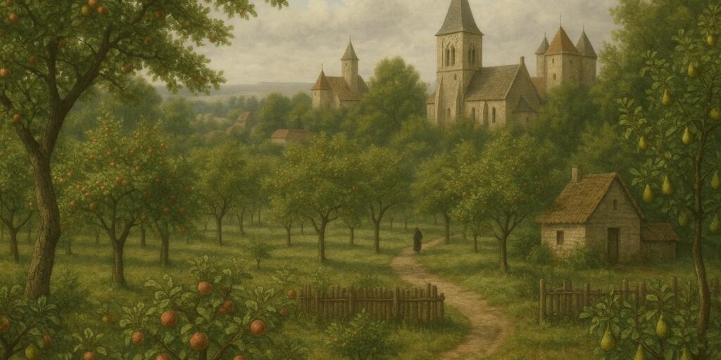 Les monastères et les abbayes disposaient aussi de vergers très bien organisés. Ces lieux, soigneusement documentés dans les cartulaires, servaient à la fois à nourrir la communauté et à expérimenter des pratiques horticoles. Les fruits récoltés pouvaient également servir à préparer des remèdes, montrant l’interconnexion entre nourriture, spiritualité et santé.