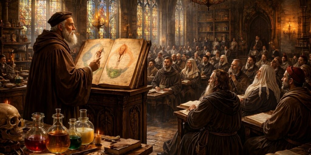 Dans les universités médiévales comme celle de Université de Paris, la théorie des humeurs est au cœur de l’enseignement. Les étudiants apprennent les textes anciens et les commentent. Cette transmission académique assure sa pérennité. Elle devient un savoir officiel.