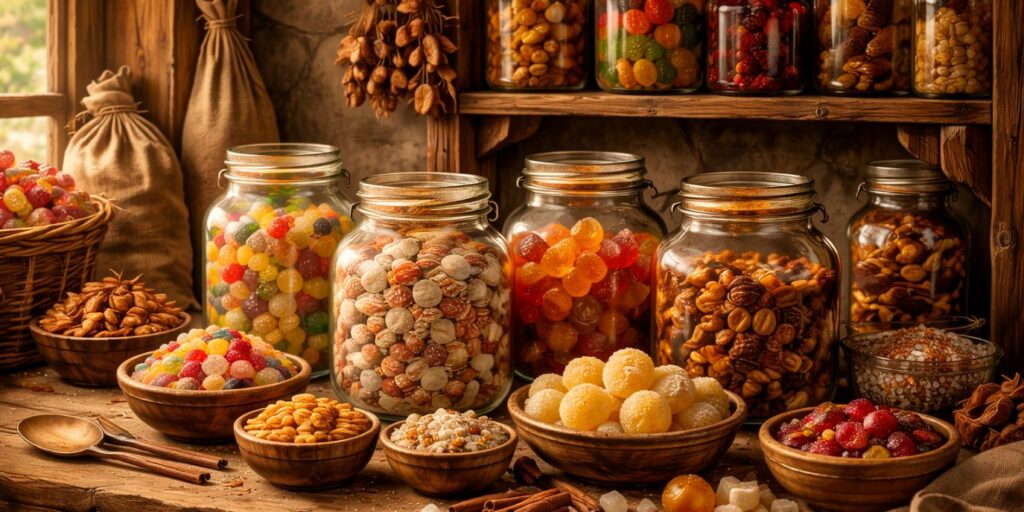 Les fruits comme les coings, les dattes ou les oranges étaient lentement cuits dans des sirops épais, puis séchés pour devenir de véritables trésors gustatifs. Ces gourmandises étaient surtout réservées à la noblesse ou aux grandes fêtes religieuses.