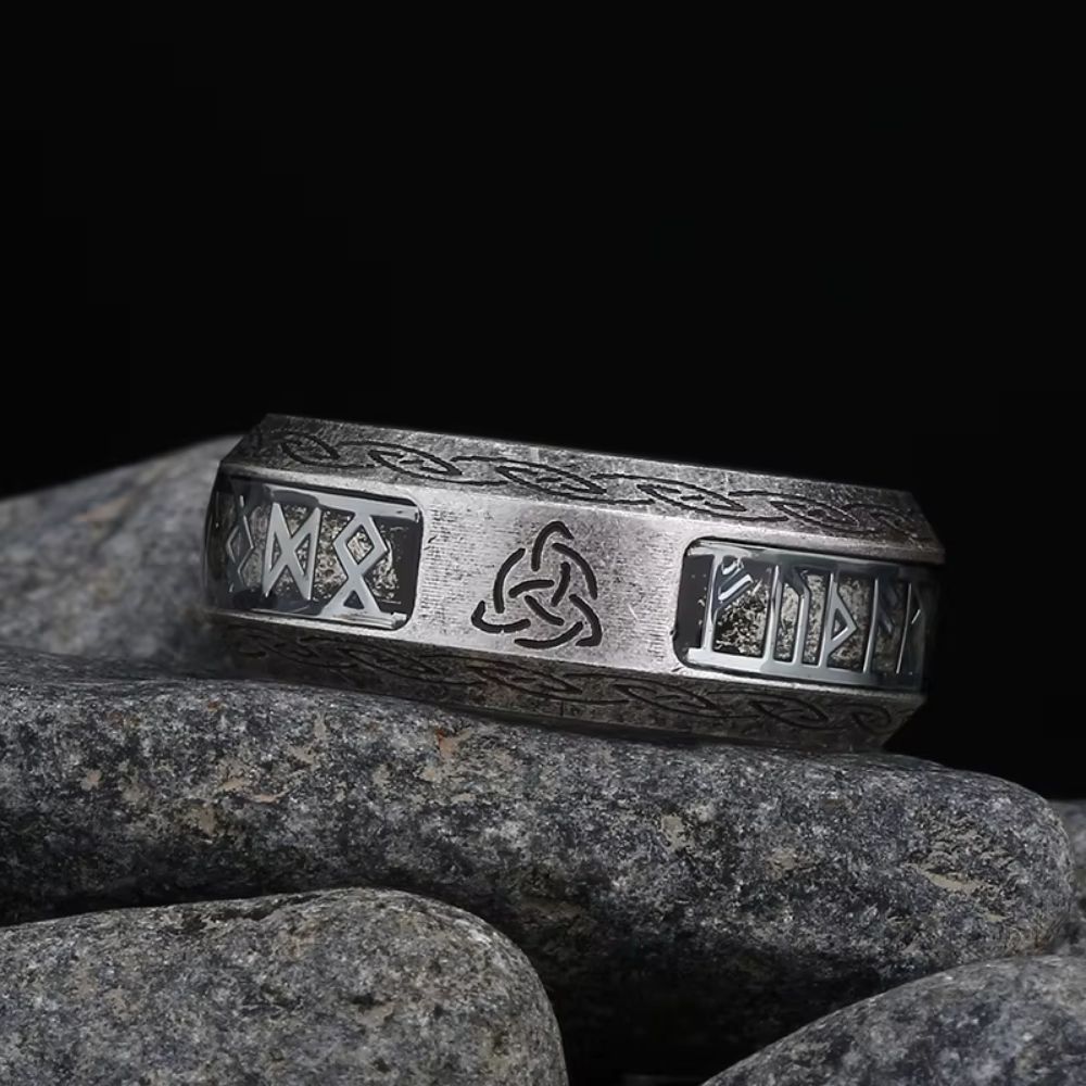 Bague viking avec runes et triquetra en acier