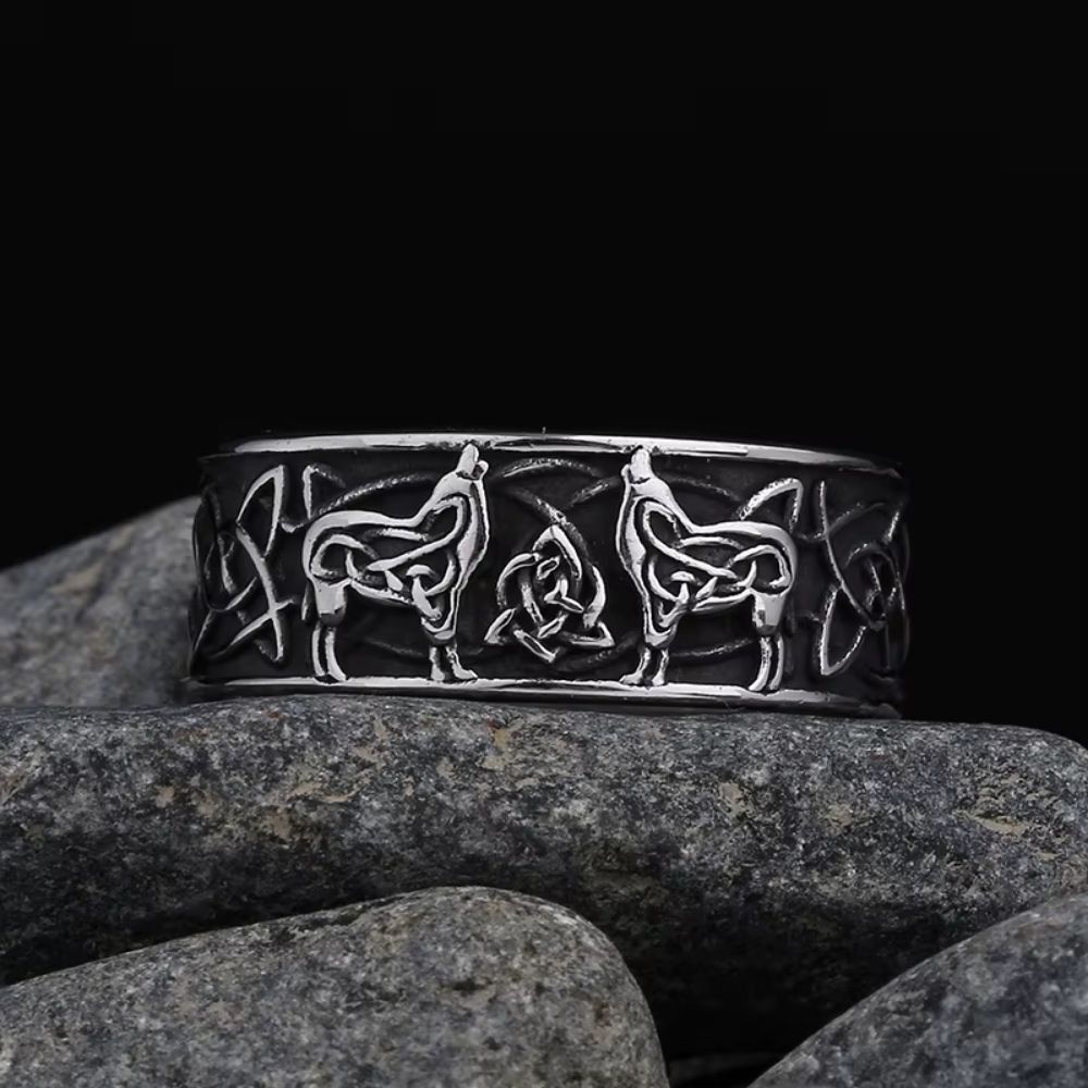 Le loup, dans la culture viking, est à la fois protecteur et destructeur. Il incarne la liberté sauvage, l’intelligence et l’esprit de meute. Associé au triquetra, symbole d’unité et d’équilibre cosmique, cette bague devient une représentation complexe de la dualité entre force brute et sagesse intérieure.
