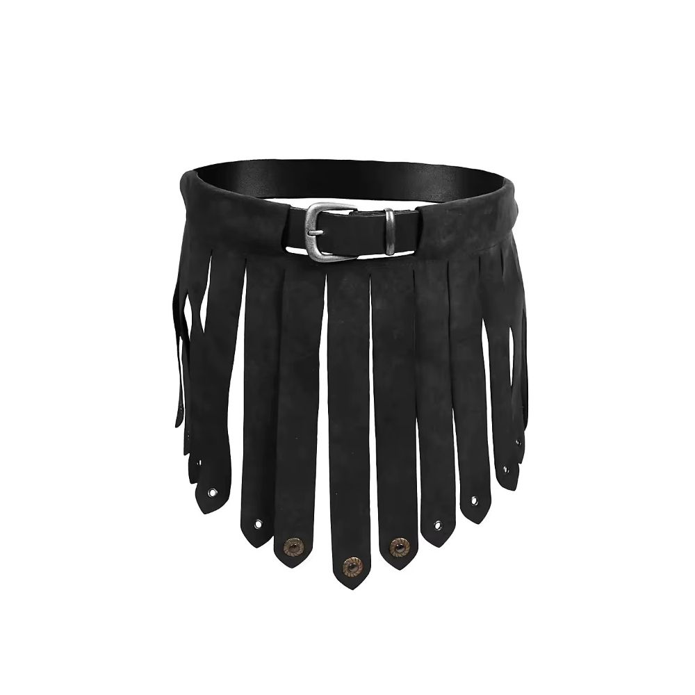 Version noire de la ceinture à lanières médiévale, parfaite pour les personnages sombres : assassin, mercenaire, sorcier ou garde de nuit. Son design brut et menaçant renforce l’aspect dramatique de votre personnage.