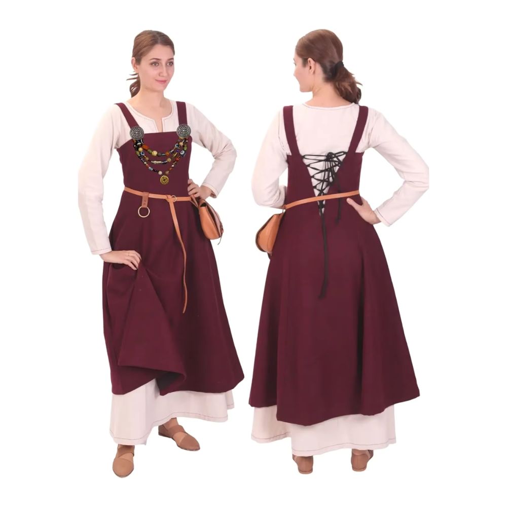 Faites ressortir votre noblesse intérieure avec la robe médiévale *Freyja*, une tenue élégante aux tons bordeaux profonds. Inspirée des vêtements féminins de l’Europe du Nord médiévale, elle allie charme ancestral et confort moderne, idéale pour se distinguer lors de tout événement à thème.