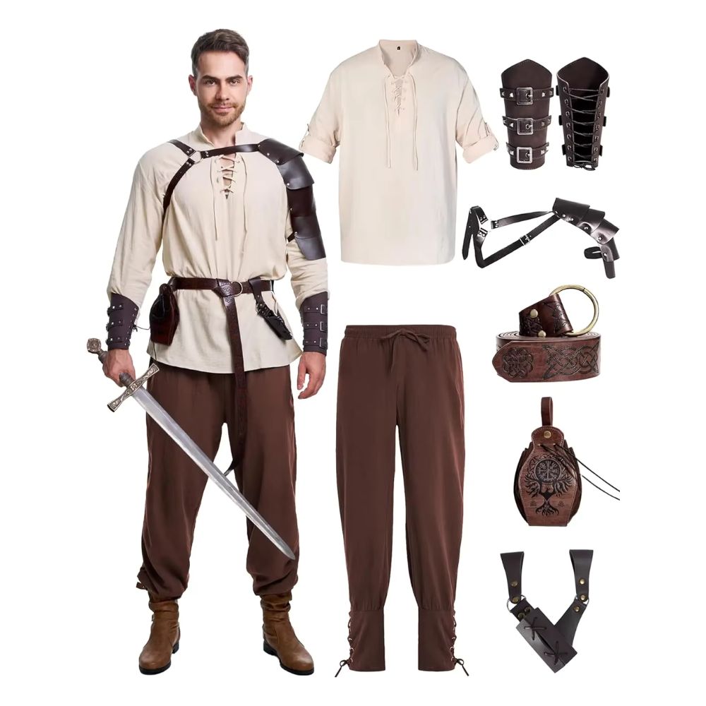 Avec cet ensemble, vous incarnez immédiatement un soldat crédible. Ajoutez une lance, un bouclier ou un casque pour enrichir votre personnage et créer une mise en scène saisissante. Les accessoires inclus (ceinture, harnais, gourde) apportent une finition soignée qui évite tout aspect « costume vide ».